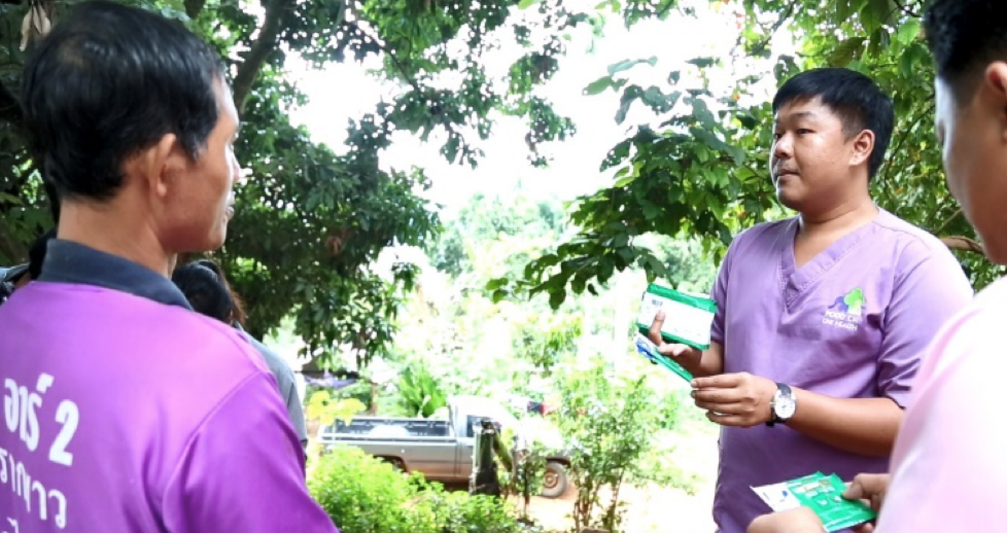 ทีม PODD สอบสวนโรค เก็บตัวอย่างซากสัตว์ปีกตายเพื่อส่งตรวจ มอบวิตามินละลายน้ำ และยาน้ำยาฆ่าเชื้อให้แก่อาสาและชาวบ้าน ให้คำแนะนำแก่ชาวบ้านในการป้องกันตนเองจากการสัมผัสซากไก่และไก่ป่วย